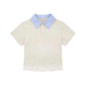 Blue Check Lapel T-Shirt