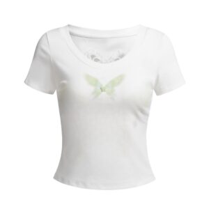 Green Butterfly Print T-Shirt